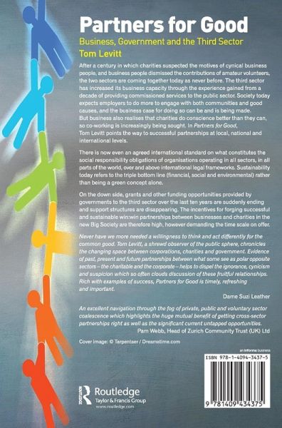 The third sector has increased its business capacity through the experience gained from a decade of providing commissioned services to the public sector. Society today expects employers to do more to engage with both communities and good causes and the business case for doing so can be and is being made. But business also realises that charities do conscience better than they can and so co-working is increasingly being sought. In Partners for Good, Tom Levitt points the way to successful partnerships at local, national and international levels.