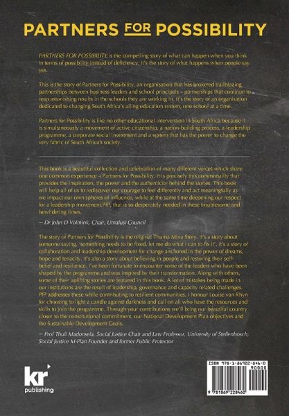 PARTNERS FOR POSSIBILITY is the compelling story of what can happen when you think in terms of possibility instead of deficiency. It's the story of what happens when people say yes.