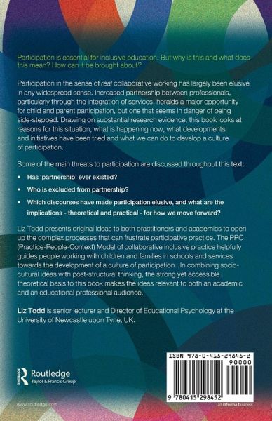 Shortlisted for the NASEN/TES 2007 Book Award Increased partnership between professionals, particularly through the integration of services, indicates a major opportunity for child and parent participation, but one that seems in danger of being side-stepped. Drawing on substantial research evidence, this book looks at reasons for this situation; what is happening now, what developments and initiatives have been tried and what can be done to develop a culture of participation? Some of the main threats to participation are discussed in this book including: Has 'partnership' ever been? Who is excluded from 'partnership'? Which discourses have made participation illusive and what are the implications - theoretical and practical - for how we move forward? Partnerships for Inclusive Education includes a helpful framework map which guides critical thinking towards the development of a culture of collaboration and presents original and stimulating ideas to open up the complex processes that can frustrate participative practice. Combining socio-cultural ideas with post-structural thinking gives this book a strong yet accessible theoretical basis, making it a valuable resource to both an academic and a professional educational audience.