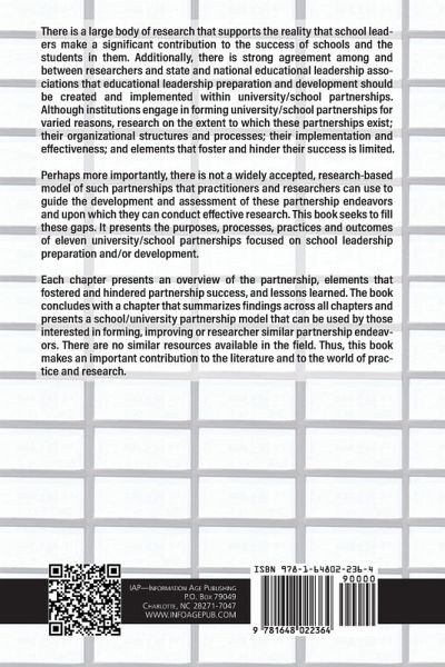 There is a large body of research that supports the reality that school leaders make a significant contribution to the success of schools and the students in them. Additionally, there is strong agreement among and between researchers and state and national educational leadership associations that educational leadership preparation and development should be created and implemented within university/school partnerships. Although institutions engage in forming university/school partnerships for varied reasons, research on the extent to which these partnerships exist; their organizational structures and processes; their implementation and effectiveness; and elements that foster and hinder their success is limited. Perhaps more importantly, there is not a widely accepted, research-based model of such partnerships that practitioners and researchers can use to guide the development and assessment of these partnership endeavors and upon which they can conduct effective research. This book seeks to fill these gaps. It presents the purposes, processes, practices and outcomes of eleven university/school partnerships focused on school leadership preparation and/or development. Each chapter presents an overview of the partnership, elements that fostered and hindered partnership success, and lessons learned. The book concludes with a chapter that summarizes findings across all chapters and presents a school/university partnership model that can be used by those interested in forming, improving or researching similar partnership endeavors. There are no similar resources available in the field. Thus, this book makes an important contribution to the literature and to the world of practice and research.