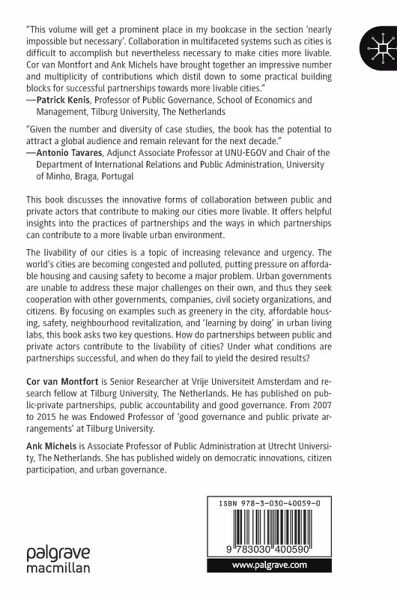 In this volume scholars from around the world discuss the innovative forms of collaboration between public and private actors that contribute to making our cities more liveable. It offers helpful insights into the practices of partnerships and the ways in which partnerships can contribute to a more liveable urban environment.