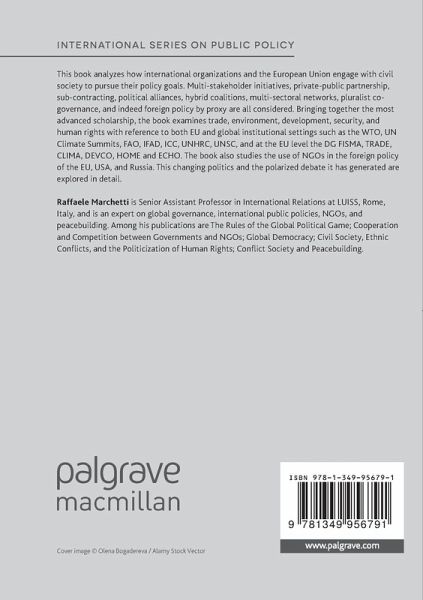 Part I. Context.- Chapter1. International Policy Partnerships with Civil Society: Risks and Opportunities; Raffaele Marchetti.- Chapter 2. The Limits of Global Governance: Transnational Neopluralism in a Complex World; Philip Cerny.- Part II. Global.- Chapter 3. How participatory is global governance of trade and environment? The cases of WTO and UN Climate Summits; Marcel Hanegraaff and Arlo Poletti.- Chapter 4. Civil society-public institution relations in global food policy: the case of FAO and the CFS; Nora McKeon.- Chapter 5. IFAD Policy engagement and civil society: The case of IFAD; Lauren Phillips.- Chapter 6. Can Human Rights NGOs be Trusted in the Corridors of the United Nations and International Criminal Justice Institutions?; Lyal S. Sunga.- Chapter 7. Civil Society and the UN Security Council: Advocacy on the Rwandan Genocide; Kseniya Oksamytna.- Part III. EU.- Chapter 8. Asymmetric patterns in the Civil Society's access to the European Commission: The cases of DG FISMA and Dg TRADE; Giuseppe Montalbano.- Chapter 9. European Commission's sing-along: civil society as a last resort in the European Union Emissions Trading Scheme debate: The case DG CLIMA; Pawel P. Pustelnik.- Chapter 10. Civil Society in the EU development and human rights agenda: The case of DG DEVCO-EIDHR; Chiara Pierobon.- Chapter 11. From Window-dressing to Windows of Opportunity: Civil Society Actors in the EU DG HOME Security Regime; Georgios Kolliarakis.- Chapter 12. NGOs and the EU's responses to emergencies and crises. An analysis of ECHO's and member states' support; Daniela Irrera.- Part IV. Controversies.- Chapter 13. Foreign Government Support for Threatened Civil Societies: Helpful or Harmful?; Clifford Bob.- Chapter 14. Foreign Policy by Proxy: Democracy and Human Rights Promotion Through the Engagement with Civil Society; Raffaele Marchetti.- Chapter 15. "Feeding the Trojan Horse" Public International Aid to NGOs as a political tool of international relations; Igor Pellicciari.