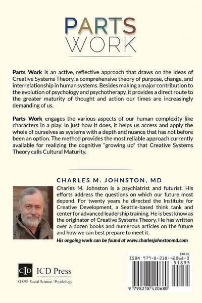 Parts Work is an active, reflective approach that draws on the ideas of Creative Systems Theory, a comprehensive theory of purpose, change, and interrelationship in human systems. Besides making a major contribution to the evolution of psychology and psychotherapy, it provides a direct route to the greater maturity of thought and action our times are increasingly demanding of us. Parts Work engages the various aspects of our human complexity like characters in a play. In just how it does, it helps us access and apply the whole of ourselves as systems with a depth and nuance that has not before been an option. The method provides the most reliable approach currently available for realizing the cognitive "growing up" that Creative Systems Theory calls Cultural Maturity.