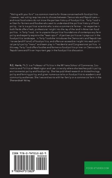 "Voting with your fork" is a common mantra for those concerned with food politics. However, real voting requires one to choose between Democrats and Republicans-and most food voters do not know the partisan history of food politics. Party Food is written for farmers and foodies who want to understand the political history of food policy. Harris is a political scientist who is also a commercial farmer. Her expertise in both fields offers fresh, professional insight into the lay of the land in American food politics. In Party Food, Harris unpacks the political foundations of contemporary farm policy and expertly explains the "team sport" of partisan politics as it plays out in the food politics landscape. In Party Food she introduces the Democratic and Republican Heroes (and Villains!) of food politics, and offers an accessible insight into each political party's policy "menu" and team play in Presidential and Congressional politics. In this way, Party Food offers foodies and farmers a food politics primer on Democrats & Republicans and fills an important gap in the food politics discussion.
