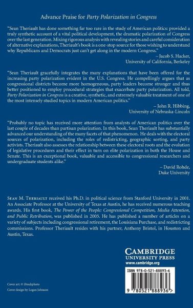 1. Party polarization in the US Congress Part I. Building Blocks for Explaining Party Polarization: 2. A brief history of party polarization 3. Explanations for party polarization Part II. Constituency Change: 4. Redistricting 5. The political and geographic sorting of constituents 6. Extremisms of party activists Part III. Institutional Change: 7. Connecting constituency change to institutional change 8. The interaction in the legislative process 9. The link between the House and Senate 10. Procedural polarization in the US Congress.