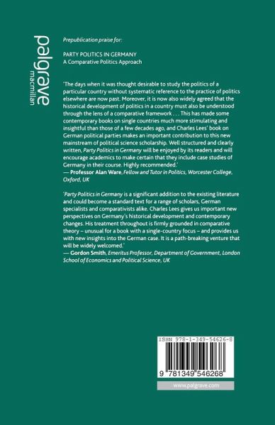 'Party Politics in Germany is a significant addition to the existing literature and could become a standard text for a range of scholars, German specialists and comparativists alike. Charles Lees gives us important new perspectives on Germany's historical development and contemporary changes. His treatment throughout is firmly grounded in comparative theory - unusual for a book with a single-country focus - and provides us with new insights into the German case. It is a path-breaking venture that will be widely welcomed.' - Gordon Smith, Emeritus Professor, Department of Government, London School of Economics and Political Science, UK