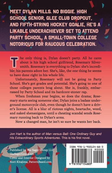 Meet Dylan Mills. No biggie. High school senior, glee club dropout, and fifth-string hockey goalie, he's a likable underachiever set to attend Party School, a small-town college notorious for raucous celebration. The only thing is, Dylan doesn't party. All he cares about is his high school girlfriend, Rosemary Silversmith. Rosemary is everything to Dylan: she's incredible; his parents adore her. She's, like, the one thing he seems to have done right in his whole life. Unfortunately, Rosemary will not be going to Party School. She's got grades and potential. She's going to one of those colleges parents brag about. She is, frankly, embarrassed by Party School and its hardcore-stoner rap. When freshman year begins, so does the drama; Rosemary starts seeing someone else; Dylan joins a badass underground motorcycle club, even though he doesn't have a driver's license. All is a blur of riotous nights, heartache, weed, and naked shenanigans, until a cheating scandal sends Rosemary running back to Dylan's arms. Now a changed man, he isn't so sure he wants her back.