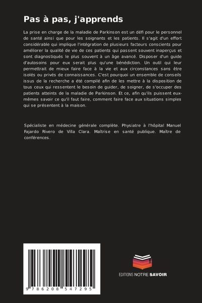 La prise en charge de la maladie de Parkinson est un défi pour le personnel de santé ainsi que pour les soignants et les patients. Il s'agit d'un effort considérable qui implique l'intégration de plusieurs facteurs conscients pour améliorer la qualité de vie de ces patients qui passent souvent inaperçus et sont diagnostiqués le plus souvent à un âge avancé. Disposer d'un guide d'autosoins pour eux serait plus qu'une bénédiction. Un outil qui leur permettrait de mieux faire face à la vie et aux circonstances sans être isolés ou privés de connaissances. C'est pourquoi un ensemble de conseils issus de la recherche a été compilé afin de les mettre à la disposition de tous ceux qui ressentent le besoin de guider, de soigner, de s'occuper des patients atteints de la maladie de Parkinson. Et ce, afin qu'ils puissent eux-mêmes savoir ce qu'il faut faire, comment faire face aux situations simples qui se présentent à la maison.