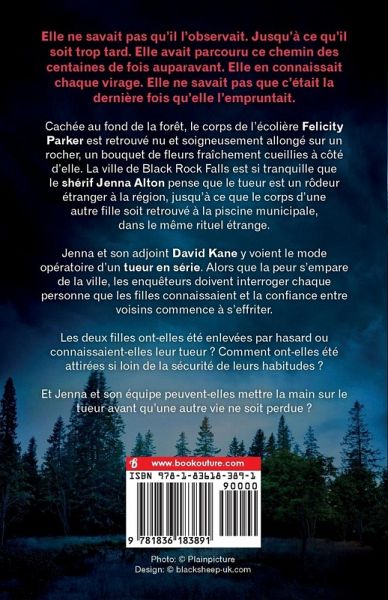 Plus d'un million de lecteurs dans le monde pour cette série à suspense par l'autrice best-seller primée par USA Today et le Wall Street Journal. Elle ne savait pas qu'il l'observait. Jusqu'à ce qu'il soit trop tard. Elle avait parcouru ce chemin des centaines de fois auparavant. Elle en connaissait chaque virage. Elle ne savait pas que c'était la dernière fois qu'elle l'empruntait. Cachée au fond de la forêt, le corps de l'écolière Felicity Parker est retrouvé nu et soigneusement allongé sur un rocher, un bouquet de fleurs fraîchement cueillies à côté d'elle. La ville de Black Rock Falls est si tranquille que le shérif Jenna Alton pense que le tueur est un rôdeur étranger à la région, jusqu'à ce que le corps d'une autre fille soit retrouvé à la piscine municipale, dans le même rituel étrange. Jenna et son adjoint David Kane y voient le mode opératoire d'un tueur en série. Alors que la peur s'empare de la ville, les enquêteurs doivent interroger chaque personne que les filles connaissaient et la confiance entre voisins commence à s'effriter. Les deux filles ont-elles été enlevées par hasard ou connaissaient-elles leur tueur ? Comment ont-elles été attirées si loin de la sécurité de leurs habitudes ? Et Jenna et son équipe peuvent-elles mettre la main sur le tueur avant qu'une autre vie ne soit perdue ? Si vous aimez Robert Dugoni, Karin Slaughter et Rachel Abbott, vous adorerez Pas une larme ainsi que tous les épisodes de cette série. Chaque roman de la série peut être lu dans l'ordre ou comme une histoire indépendante. Ce que les lecteurs disent de la série Alton & Kane : Absolument fantastique... j'ai été absorbé tout au long de l'histoire. Cette auteure sait comment tenir ses lecteurs en haleine et faire battre leurs c¿urs plus vite ! Stardust Book Reviews, ¿¿¿¿¿ Je pense sincèrement que je ne me lasserai jamais de Kane et d'Alton... Honnêtement, ce couple est un excellent divertissement et une excellente lecture. The Writing Garnet, ¿¿¿¿¿ Un thriller au rythme effréné qui ne demande qu'à être lu d'une traite... Impossible de le lâcher. The Book Nurse, ¿¿¿¿¿ Cette série ne cesse de s'améliorer... Ce mystère est plein de rebondissements et de surprises. Chaque révélation est plus choquante que la précédente... J'ai hâte de lire la suite. Lecteur de Goodreads, ¿¿¿¿¿ J'adore cette série. Dès que j'ai reçu ce livre, il s'est retrouvé tout en haut de ma liste de livres à lire. J'ai même laissé un livre à moitié lu pour le commencer... Lu en une journée. Je n'avais vraiment pas envie de le poser. Lecteur de Goodreads, ¿¿¿¿¿ J'ai lu ce livre en trois heures chrono... J'avais besoin de savoir qui était le tueur, tout de suite. Et ce n'était pas qui je pensais ! Le livre m'a tenu en haleine jusqu'à la fin. Shalini's Books & Reviews, ¿¿¿¿¿