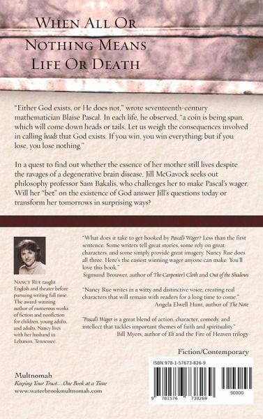 Confirmed atheist Jill McGavock faces the mental deterioration of her brilliant mother. In a quest to cope with this devastating situation, Jill seeks out philosophy professor Sam Hunt. Savvy Sam challenges Jill to make "Pascal's wager" -- to "bet" that God exists by acting as if he does. The results not only change Jill's mind but transform her life in ways she never could have imagined. An exciting, faith-building thriller!