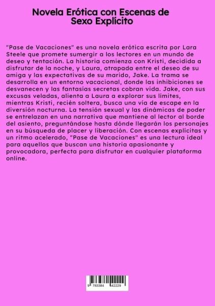 "Pase de Vacaciones" es una novela erótica escrita por Lara Steele que promete sumergir a los lectores en un mundo de deseo y tentación. La historia comienza con Kristi, decidida a disfrutar de la noche, y Laura, atrapada entre el deseo de su amiga y las expectativas de su marido, Jake. La trama se desarrolla en un entorno vacacional, donde las inhibiciones se desvanecen y las fantasías secretas cobran vida. Jake, con sus excusas veladas, alienta a Laura a explorar sus límites, mientras Kristi, recién soltera, busca una vía de escape en la diversión nocturna. La tensión sexual y las dinámicas de poder se entrelazan en una narrativa que mantiene al lector al borde del asiento, preguntándose hasta dónde llegarán los personajes en su búsqueda de placer y liberación. Con escenas explícitas y un ritmo acelerado, "Pase de Vacaciones" es una lectura ideal para aquellos que buscan una historia apasionante y provocadora, perfecta para disfrutar en cualquier plataforma online.