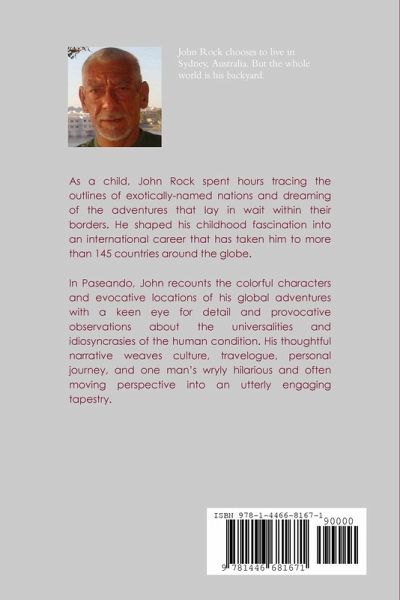 As a child, John Rock spent hours tracing the outlines of exotically-named nations and dreaming of the adventures that lay in wait within their borders. He shaped his childhood fascination into an international career that has taken him to more than 145 countries around the globe. In Paseando, John recounts the colorful characters and evocative locations of his global adventures with a keen eye for detail and provocative observations about the universalities and idiosyncrasies of the human condition. His thoughtful narrative weaves culture, travelogue, personal journey, and one man's wryly hilarious and often moving perspective into an utterly engaging tapestry.