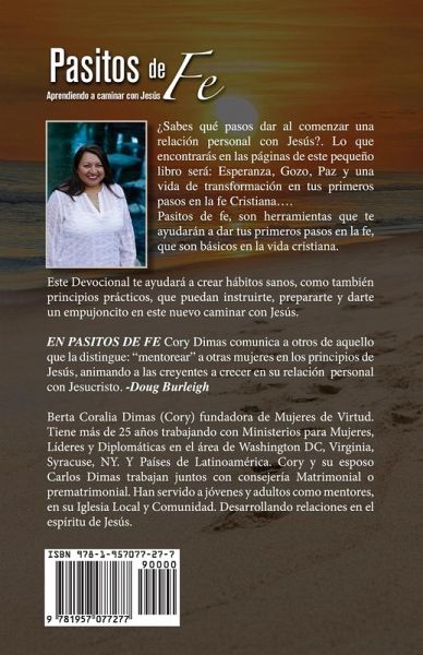¿Sabes qué pasos dar al comenzar una relación personal con Jesús? Lo que encontraras en las páginas de este pequeño libro será: Esperanza, gozo, paz y una vida de transformación en tus primeros pasos en la fe Cristiana.... Pasitos de fe, son herramientas que te ayudarán a dar tus primeros pasos en la fe, que son básicos en la vida cristiana. Este Devocional te ayudará a crear hábitos sanos, como también principios prácticos, que puedan instruirte, prepararte y darte un empujoncito en este nuevo caminar con Jesús.