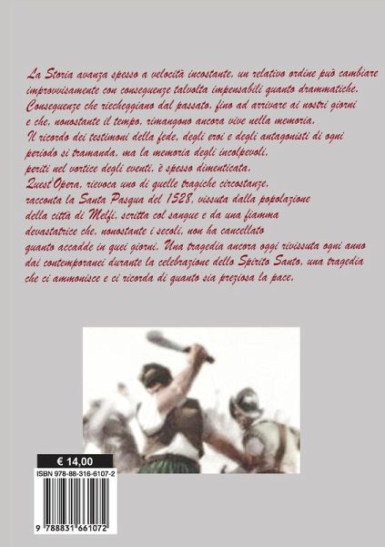 La Storia avanza spesso a velocità incostante, un relativo ordine può cambiare improvvisamente con conseguenze talvolta impensabili quanto drammatiche. Conseguenze che riecheggiano dal passato, fino ad arrivare ai nostri giorni e che, nonostante il tempo, rimangono ancora vive nella memoria. Il ricordo dei testimoni della fede, degli eroi e degli antagonisti di ogni epoca si tramanda, ma la memoria degli incolpevoli, periti nel vortice degli eventi, è spesso dimenticata. Questa Opera, rievoca una di quelle tragiche circostanze, racconta la Santa Pasqua del 1528, vissuta dalla popolazione della città di Melfi, una tragedia scritta col sangue e da una fiamma devastatrice che, nonostante i secoli, non ha cancellato quanto accadde in quei giorni. Una tragedia ancora oggi rivissuta ogni anno dai contemporanei durante la celebrazione dello Spirito Santo, una tragedia che ci ammonisce e ci ricorda di quanto sia preziosa la pace.