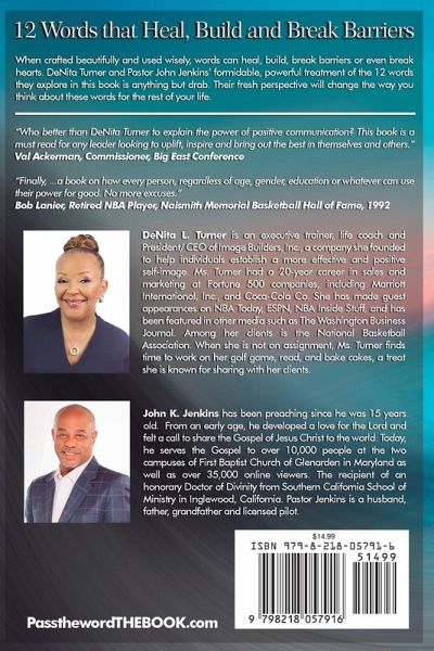 There is something special about words. They can heal, build, break barriers, or even break hearts. When crafted beautifully and used wisely, words can awaken as well as encourage the greatness within. Given the power words inherently possess, words have the propensity to do good in this world. On the other hand, when charged by misguided thinking or negative emotions, words can do a lot of damage, very quickly, very painfully. No one knows this better than DeNita Turner and Pastor John Jenkins. In their respective fields as a consultant and a pastor, both have witnessed far too many people…mehr