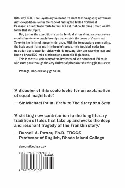 'PASSAGE' is the shocking account of the tragic John Franklin Expedition, brilliantly told in a new novel by Angus Wardlaw, descendant of Captain Francis Crozier who commanded the HMS Terror, sister ship to the HMS Erebus. Wardlaw dramatically unveils the spine-tingling true story of this ambitious but ultimately fated expedition, that ended in death and cannibalism. Meticulously researched, drawing on all that is known about the fate of this ambitious expedition, 'PASSAGE' relates the history, horror and extreme challenges to human fortitude faced by the crews of the two ships; familiar to many from 'The Terror' - the chilling Ridley Scott produced TV series.On 19th May 1845 the Royal Navy launches its most technologically advanced Arctic expedition ever in the hope of finding the fabled Northwest Passage: a direct trade route to the Far East that could bring untold wealth to the British Empire.But, just as the expedition is on the brink of astonishing success, nature cruelly threatens to crush the ships and stretch the crews of Erebus and Terror to the limits of human endurance. With the temperature plummeting, the body count rising and little hope of rescue, their troubled leader has no option but to abandon ships with his freezing, sick and starving men and begin a brutal 500-mile death march across the High Arctic. This is the true, epic story of the brotherhood and heroism of 129 souls who must pass through the very darkest of places in their struggle to survive as told by the great-great-great-great nephew of Francis Crozier, captain of HMS Terror.