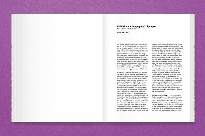 Manche Dinge erzählen Geschichten und tragen Erinnerungen in sich - so begann dieses Buch mit einem Küchenhandtuch. Über 12 Jahre hinweg porträtierte der Braunschweiger Fotograf und Künstler Klaus G. Kohn Menschen im "Herbst ihres Lebens" auf einem verschneiten Acker. Unscheinbare Requisiten ermöglichen es, ohne Worte in die Lebensgeschichten der Protagonist*innen einzutauchen. Der Ausgangspunkt von Kohns Arbeit war ein prägendes Gespräch mit seinem Vater, der nach Kriegsende in einem niedersächsischen Bauerndorf strandete. Ohne Familie und materielle Sicherheit blieb ihm nur ein Küchenhandtuch als letzter Besitz. Dieses Handtuch wurde zum Symbol für seinen Neuanfang und den lebenslangen Kampf um Sicherheit und Anerkennung. Das Porträt seines Vaters - mit dem Küchenhandtuch auf einem Acker - wurde zum Leitmotiv von Kohns Serie. Für "Passage: Die Dinge, das Leben" führte Kohn persönliche Gespräche mit fast 50 verschiedenen Menschen. Seine einfühlsamen Porträts spiegeln prägende Erlebnisse wider - vom Verlust von Geborgenheit, Heimat und Familie bis hin zur Schaffung neuer Strukturen. Sie erzählen persönliche Geschichten, sind Zeugnisse von Kraft und Resilienz, die oft auch von traumatischen Erfahrungen geprägt wurden. Über das Individuelle hinaus repräsentieren sie die Erfahrungen und den Gestaltungswillen einer ganzen Generation. Jede Geschichte wird durch eine symbolträchtige Requisite zum Leben erweckt: das Federbett für das kleine Mädchen im eisigen Kriegswinter, das Brot für die hungrige Jugendliche in der Festung Breslau oder die Fliege als Symbol der Extravaganz eines jungen Mannes.
