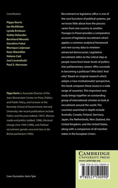 Recruitment to legislative office is one of the core functions of political systems, yet we know little about how the process varies from one country to another. Passages to Power provides a comparative account of legislative recruitment which applies a common analytical framework and new survey data to nineteen advanced democracies. Legislative recruitment refers to the critical step as people move from lower levels of politics into parliamentary careers. Who succeeds in becoming a politician? Who fails? And why? Based on original research which adopts a 'new institutionalist' perspective, this 1997 book compares these issues in a wide range of countries. This important study brings together an outstanding group of international scholars to look at recruitment around the world. The countries examined in depth include Australia, Canada, Finland, Germany, Japan, the Netherlands, New Zealand, the United Kingdom, and the United States, along with a comparison of all member states in the European Union.