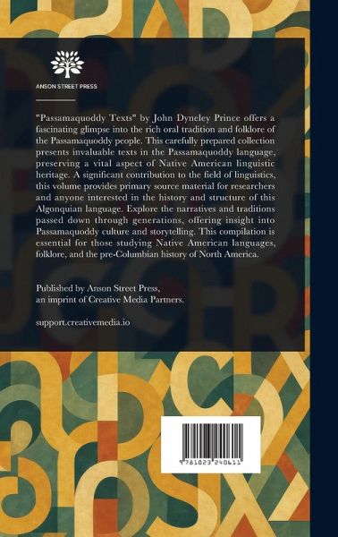 "Passamaquoddy Texts" by John Dyneley Prince offers a fascinating glimpse into the rich oral tradition and folklore of the Passamaquoddy people. This carefully prepared collection presents invaluable texts in the Passamaquoddy language, preserving a vital aspect of Native American linguistic heritage. A significant contribution to the field of linguistics, this volume provides primary source material for researchers and anyone interested in the history and structure of this Algonquian language. Explore the narratives and traditions passed down through generations, offering insight into Passamaquoddy culture and storytelling. This compilation is essential for those studying Native American languages, folklore, and the pre-Columbian history of North America. This work has been selected by scholars as being culturally important, and is part of the knowledge base of civilization as we know it. This work is in the public domain in the United States of America, and possibly other nations. Within the United States, you may freely copy and distribute this work, as no entity (individual or corporate) has a copyright on the body of the work. Scholars believe, and we concur, that this work is important enough to be preserved, reproduced, and made generally available to the public. We appreciate your support of the preservation process, and thank you for being an important part of keeping this knowledge alive and relevant.