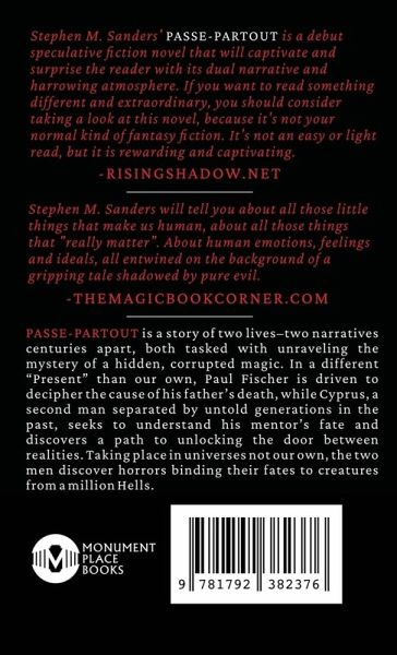 PASSE-PARTOUT is a story of two lives--two narratives centuries apart, both tasked with unraveling the mystery of a hidden, corrupted magic. In a different "Present" than our own, Paul Fischer is driven to decipher the cause of his father's death. A second man separated by untold generations in the past, Cyprus seeks to understand his mentor's fate and discovers a path to unlocking the door between realities. Taking place in universes not our own, the two men discover horrors binding their fates to creatures from a million Hells.
