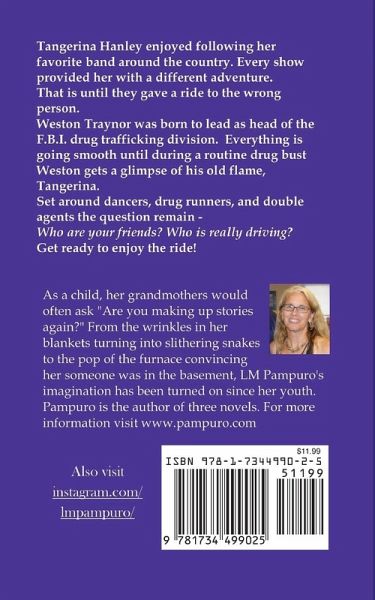 Tangerina Hanley enjoyed following her favorite band around the country. Every show provided her with a different adventure. That is until they gave a ride to the wrong person. Weston Traynor was born to lead as head of the F.B.I. drug trafficking division. Everything is going smooth until during a routine drug bust Weston gets a glimpse of his old flame, Tangerina. Set around dancers, drug runners, and double agents the question remain - Who are your friends? Who is really driving? Get ready to enjoy the ride!