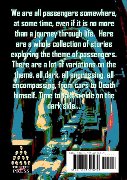 We are all passengers somewhere, at some time, even if it is no more than a journey through life. Here are a whole collection of stories exploring the theme of passengers. There are a lot of variations on the theme, all dark, all engrossing, all encompassing, from cars to Death himself. Time to take a ride on the dark side...