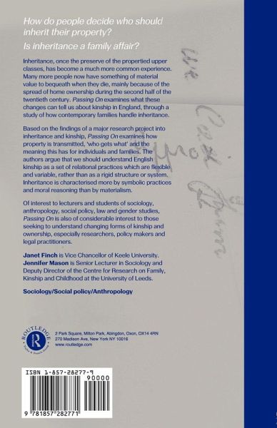 Janet Finch Vice Chancellor of Keele University. Jennifer Mason Senior Lecturer in Sociology and Deputy Director of the Centre for Research on Family, Kinship and Childhood at the University of Leeds.