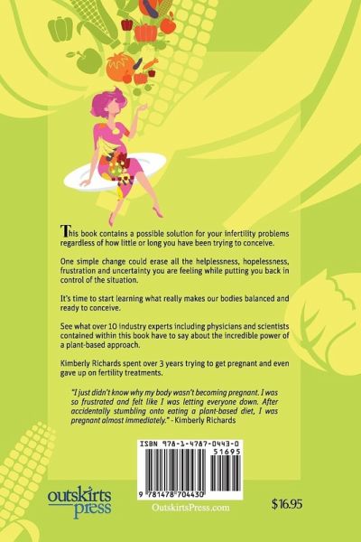 This book contains a possible solution for your infertility problem regardless of how little or long you have been trying to conceive even if you think you can't get pregnant. Need help getting pregnant? One simple change could erase all the helplessness, hopelessness, frustration and uncertainty you are feeling while putting you back in control to provide help getting pregnant fast. It's time to start learning what really makes our bodies balanced and ready to conceive. Need advice on getting pregnant? See what over 10 health industry experts including physicians and scientists contained within this book have to say about the incredible power of a plant-based approach that will help with infertility. Kimberly Richards spent over three years trying to get pregnant and even gave up on fertility treatments. If you need infertility help, don't think a fertility clinic is the sure bet to get pregnant. "I had been trying to conceive for years, I just didn't think my body would ever become pregnant. After accidently stumbling onto this plant-based approach, I was pregnant in less than three months."