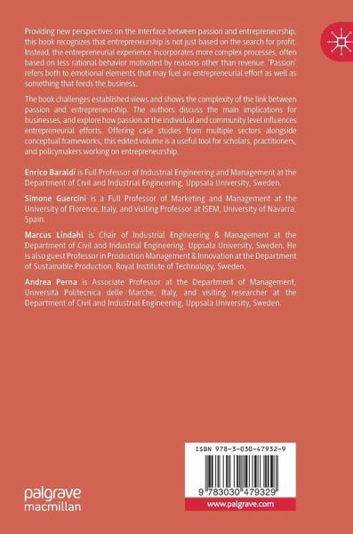 The book challenges established views and shows the complexity of the link between passion and entrepreneurship. The authors discuss the main implications for businesses, and explore how passion at the individual and community level influences entrepreneurial efforts. Offering case studies from multiple sectors alongside conceptual frameworks, this edited volume is a useful tool for scholars, practitioners, and policymakers working on entrepreneurship.