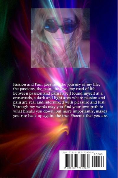 Passion and Pain goes into the journey of my life, the passions, the pain, the love, my road of life. Between passion and pain have I found myself at a crossroads, a dark and light area where passion and pain are real and intermixed with pleasure and lust. Through my words may you find your own path to what breaks you down, but more importantly, makes you rise back up again, the true Phoenix that you are.