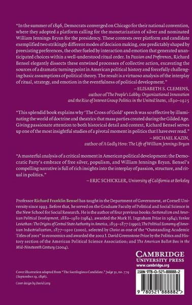 The 1896 Democratic National Convention simultaneously proposed a radically new trajectory for American industrial expansion, harshly repudiated its own incumbent president, and rudely overturned the party's traditional regional and social hierarchy. The passion that attended these decisions was deeply embedded in the traditional alliances and understandings of the past, in the careers and futures of the party's most prominent leaders and most insignificant ward heelers, and in the personal relations of men who had long served together in the halls of Congress. This passion was continuously on display in the Chicago Coliseum, shaped by the rhythm of parliamentary ritual and the physical architecture of the convention hall. William Jennings Bryan anticipated the moment when pathos would be at its height and chose that moment to give his 'Cross of Gold' address, thus harnessing passion to his personal ambition and winning the presidential nomination.