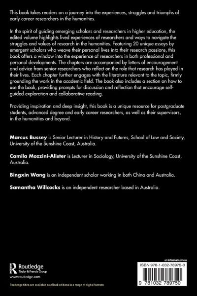 This book takes readers on a journey into the experiences, struggles and triumphs of early career researchers in the humanities. Providing inspiration and deep insight, this book is a unique resource for postgraduate students, advanced degree and early career researchers, as well as their supervisors, in the humanities and beyond.