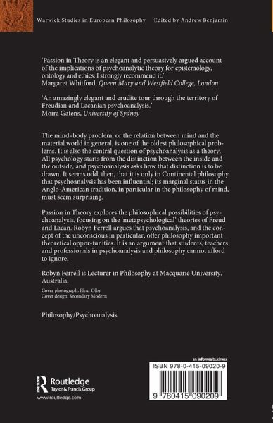 Psychoanalysis is a profound theory of body and mind. The psychoanalytic description of the mind's connection to the body, particularly through the unconscious, has made it difficult for philosophy and psychoanalysis to embrace. Freud and Lacan argued that this connection is marked by the passion of the 'knowing subject'. Passion in Theory explores what such a characterisation means and how it provides a key to many contemporary theoretical and philosophical concerns. Unlike many previous studies of psychoanalysis, Robyn Ferrell's analysis - of Freud's metapsychology and its development in Lacanian theory - takes the theory of psychoanalysis as the means to understanding the psychoanalytic project itself. Outlining the philosophical possibilities in psychoanalysis, Passion in Theory reveals the shape of an evolving set of concepts that have direct consequences for contemporary philosophy, empirical science and feminism.