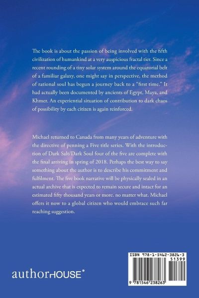 The book is about the passion of being involved with the fifth civilization of humankind at a very auspicious fractal tier. Since a recent rounding of a tiny solar system around the equatorial belt of a familiar galaxy, one might say in perspective, the method of rational soul has begun a journey back to a first time. It had actually been documented by ancients of Egypt, Maya, and Khmer. An experiential situation of contribution to dark chaos of possibility by each citizen is again reinforced.