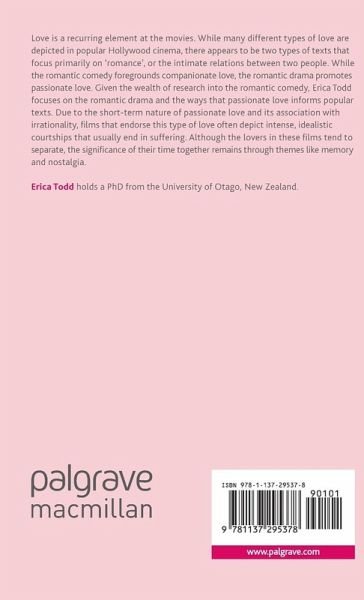 Acknowledgements Abbreviations Introduction: Depicting Love in Cinema 1. Passionate Love in Hollywood and the Romanic Drama Genre 2. Passionate Love in Early Hollywood Romantic Dramas 3. Passionate Love in Hollywood Romantic Dramas 1950s-1970s 4. Passionate Love in Contemporary Hollywood Dramas Conclusion: The Changing Landscape of Passionate Love in Cinema Notes Bibliography Filmography Index