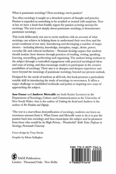 `Overall, I found Passionate Sociology an engaging text which made me reflect on my own teaching practices, and my understanding of sociology. It also effectively highlights some of the key problems with those sociologists we now can categorize as `dispassionate' - Thesis Eleven `The text is a wonderful demystification of sociology; students can learn an enormous amount from it. What Game and Metcalfe want to do is put the passion back into sociology and thus emancipate the subject and its pleasures from those who would be its High Priests.... Wonderful!' - Keith Tester, Reader in Sociology, Portsmouth University `Passionate Sociology is a courageous book that breathes life into the questions that haunt sociology and other disciplines. The joy and the preplexity of writing sociology is made tangible, as is the great wager of how to render textual the machinations of everyday living. It encourages us all to become more attentive and caring students of the social world that we inhabit' - Elspeth Probyn, Director of Women's Studies, The University of Sydney