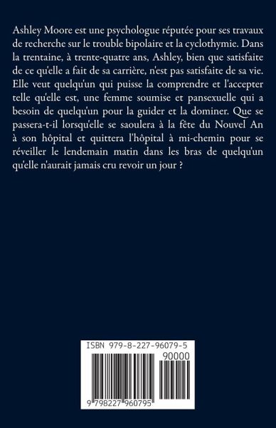Ashley Moore est une psychologue réputée pour ses travaux de recherche sur le trouble bipolaire et la cyclothymie. Dans la trentaine, à trente-quatre ans, Ashley, bien que satisfaite de ce qu'elle a fait de sa carrière, n'est pas satisfaite de sa vie. Elle veut quelqu'un qui puisse la comprendre et l'accepter telle qu'elle est, une femme soumise et pansexuelle qui a besoin de quelqu'un pour la guider et la dominer. Que se passera-t-il lorsqu'elle se saoulera à la fête du Nouvel An à son hôpital et quittera l'hôpital à mi-chemin pour se réveiller le lendemain matin dans les bras de quelqu'un qu'elle n'aurait jamais cru revoir un jour ?