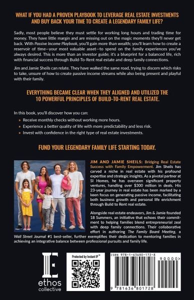 Now a USA Today Featured Best Seller! What if you had a proven playbook to leverage real estate investments to buy back your time and create a legendary family life? Sadly, most people believe they must settle for working long hours and trading time for money. They have little margin and are missing out on the magic moments they'll never get back. With "Passive Income Playbook," you'll gain more than wealth; you'll learn how to create a reservoir of time-your most valuable asset-to spend on the family experiences you've always desired. This is more than an investment guide; it's a blueprint for a balanced life, rich with financial success through Build-To-Rent real estate and deep family connections. Jim and Jamie Sheils can relate. They have walked the same road, trying to discern which risks to take, unsure of how to create passive income streams while also being present and playful with their family. Everything changed when they discovered 10 powerful principles that reshaped their family life, including the amount of time spent at the office and how they created wealth. "Everything became clear when they aligned and utilized the 10 powerful principles of Build-To-Rent real estate." In this book, you'll discover how you can: Generate sustainable wealth without sacrificing your time. Invest with confidence. Experience a better quality of life with more predictability and less risk. Fund your legendary family life starting today.