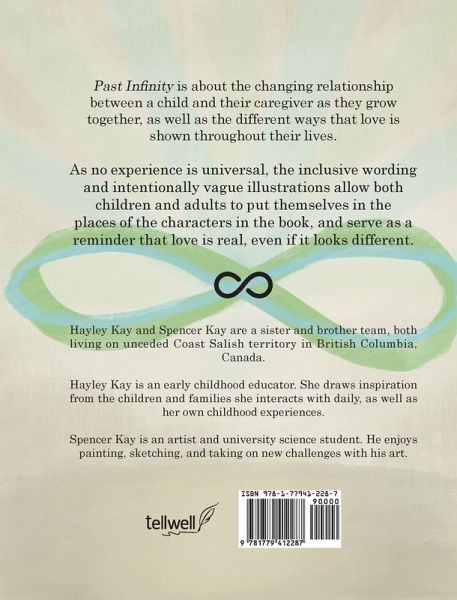 Past Infinity is about the changing relationship between a child and their caregiver as they grow together, as well as the different ways that love is shown throughout their lives. As no experience is universal, the inclusive wording and intentionally vague illustrations allow both children and adults to put themselves in the places of the characters in the book, and serve as a reminder that love is real, even if it looks different.