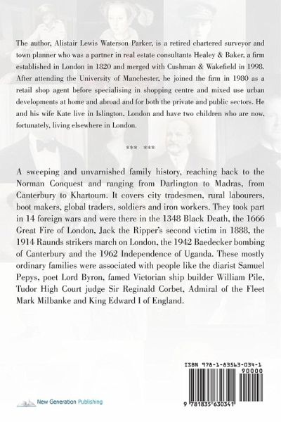A sweeping and unvarnished family history, reaching back to the Norman Conquest and ranging from Darlington to Madras, from Canterbury to Khartoum. It covers city tradesmen, rural labourers, boot makers, global traders, soldiers and iron workers. They took part in 14 foreign wars and were there in the 1348 Black Death, the 1666 Great Fire of London, Jack the Ripper's second victim in 1888, the 1914 Raunds strikers march on London, the 1942 Baedecker bombing of Canterbury and the 1962 Independence of Uganda. These mostly ordinary families were associated with people like the diarist Samuel Pepys, poet Lord Byron, famed Victorian ship builder William Pile, Tudor High Court judge Sir Reginald Corbet, Admiral of the Fleet Mark Milbanke and King Edward I of England.