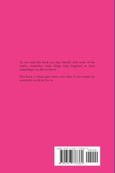 This book is where past times cross time in this insane yet wonderful world we live in. As you read this book you may identify with some of the stories, remember some things long forgotten or learn somethings you did not know.