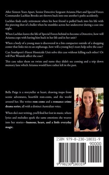 After Sixteen Years Apart, Senior Detective Sergeant Arianna Hart and Special Forces Commander Lachlan Brooks are thrown back into one another's paths accidently. Lachlan finds early retirement when his best friend is pulled back into his life with the piercing shot of a bullet when he stumbles across her undercover during a case one night. When Lachlan leaves the life of Special Forces behind to become a Detective, how will Arianna cope with having him back in her life and in her unit? When a body of a young man is discovered in a bin compactor outside of a shopping center that links ties to an orphanage, how will a young boy's tears help solve the case? Can Southport's Finest Homicide Unit solve this case without killing each other? Or will Past Wounds affect the case? This case takes them on twists and turns they didn't see coming and a trip down memory lane which Arianna would have rather left in the past.