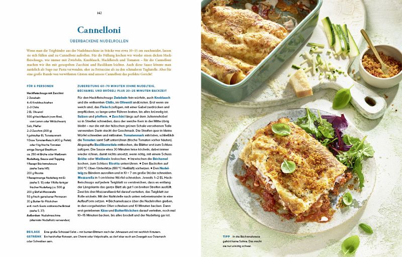Selbstverständlich lassen sich ihre Nudelrezepte auch mit fertiger Pasta aus dem Regal köstlich und blitzschnell zubereiten. Mal herzhaft, mal elegant, immer besonders, oft mit Gemüse, gern mit Fisch und Meeresfrüchten, manchmal mit Fleisch, stets mit überraschendem Akzent. Und natürlich fehlen auch die Klassiker nicht, die man aus dem Urlaub kennt und immer schon mal zu Hause zubereiten wollte die ultimative Bolo(gnese), Suppen und Eintöpfe, Aufläufe, Salate, sogar süße Gerichte und Desserts.