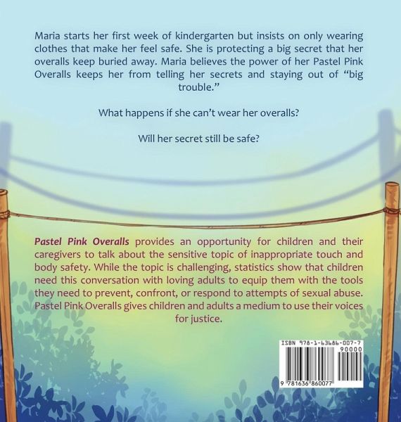 Maria starts her first week of kindergarten but insists on only wearing clothes that make her feel safe. She is protecting a big secret that her overalls keep buried away. Maria believes the power of her pastel pink overalls keeps her from telling her secrets and staying out of "big trouble." What happens if she can't wear her overalls? Will her secret still be safe? Pastel Pink Overalls provides an opportunity for children and their caregivers to talk about the sensitive topic of inappropriate touch and body safety. While the topic is challenging, statistics show that children need this conversation with loving adults to equip them with the tools they need to prevent, confront, or respond to attempts of sexual abuse. Pastel Pink Overalls gives children and adults a medium to use their voices for justice.