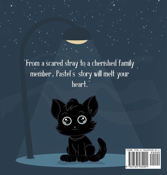 Pastel: A soft and delicate shade of love Meet Pastel, a tiny black kitten with fur as sleek as shadows! Lost and scared on a chilly night, Pastel longs for a warm cuddle and a place to call home. But wait! A kind couple move in next door, and their lives are about to be whiskered away! "From a scared stray to a cherished family member, Pastel's story will melt your heart." Author's Note Pastel's story was inspired by a real-life rescue. The real Pastel brought so much joy to my life, and I wanted to share that experience with others. I hope this book inspires you to love all creatures, regardless of their appearance. In this heart-warming story, you'll discover:How a scaredy-cat kitten finds a forever home filled with love (and yummy cat food!) The playful adventures of Pastel, chasing dust bunnies, purring like tiny engines, and filling their home with happy meows! A secret weapon called a "litter box" that keeps Pastel happy and the house smelling fresh. A cat carrier that keeps Pastel safe and comfy during exciting car rides (not scary ones!). This delightful book is perfect for:Animal lovers, especially those who adore cuddly black cats. Kids who dream of having a furry best friend. Anyone who enjoys heart-warming stories about friendship, kindness, and happy endings. So come curl up with Pastel and learn how to take care of your own furry friend!