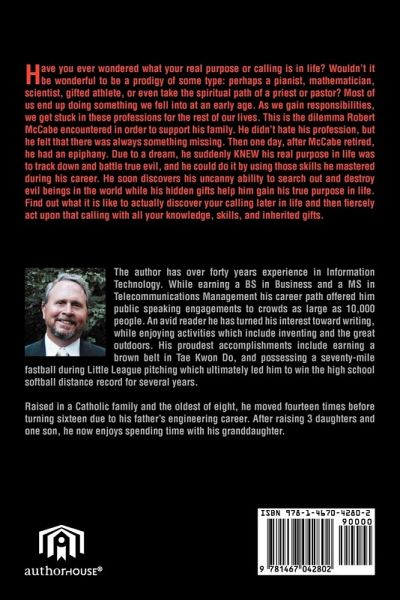 Have you ever wondered what your real purpose or calling in life is? Wouldn't it be wonderful if you were a prodigy of some type: like a pianist, mathematician, scientist, gifted athlete, or even a priest or pastor. But most of us plod through life doing something we fell into at an early age. Then we gain responsibilities and get stuck in those professions for the rest of our life. Find out what it is like to actually discover your calling in life at a later age and then act upon that calling with all your gathered knowledge and inherited gifts and skills. Robert McCabe spent a lot of his adult life with careers that he fell into for money to support his family. He didn't hate his profession, but he felt there was always something missing. Then one day, after McCabe was semi-retired he was struck by a mental lightning bolt. He suddenly KNEW what his real purpose in life was to be. McCabe goes after that purpose with all his might and skill (The Destruction of True Evil). McCabe learned skills though out his career. They served him very well in the rooting out and destruction of evil beings in the world. He also discovered he possessed hidden gifts to help him with this true purpose in life. Join McCabe and watch what finding your true purpose in life could entail. It is sometimes terrifying and heart wrenching. He MUST always make the right decisions as witness, judge, and executioner of Evil.