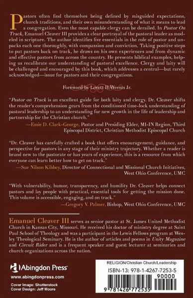 So often pastors are defined by external forces, rather than by the essential nature of the pastoral leader as modeled in scripture. Taking positive steps to 'put pastors on track, ' author Emanuel Cleaver III draws on his own experiences and from dynamic and effective pastors and churches across the country. He presents biblical models to distill his message and to recalibrate the definition of what makes the best church leaders. Pastor on Track helps clergy re-frame their congregation's expectations and empowers them to do the work of the people, so the pastor can do the work of the pastor.