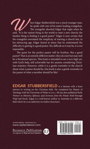 When Edgar Stubbersfield was a much younger man, he spoke with one of his state's leading evangelists. The evangelist shocked Edgar that night when he said, ""It is the easiest thing in the world to start a new church; the hardest thing is finding it a good pastor."" Edgar is now certain that the evangelist overstated the simplicity of starting a church but, in his advancing age, Edgar feared at times that he understated the difficulty in getting it a good pastor. Yet, difficult as it may be, it is not impossible. The quest for the perfect pastor will be fruitless. But a good pastor? That is an entirely different matter; they do exist but may well be a threatened species. This book is intended to set a very high yet, with God's help, still achievable bar for anyone considering Christian ministry. However, while it is a gentle reminder to the church about what a pastor should be, this book is also a gentle reminder to the pastor of what a member should be like!