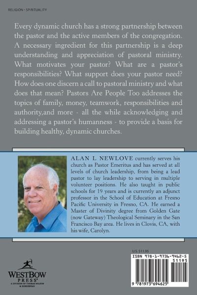Every dynamic church has a strong partnership between the pastor and the active members of the congregation. A necessary ingredient for this partnership is a deep understanding and appreciation of pastoral ministry. What motivates your pastor? What are a pastor's responsibilities? What support does your pastor need? How does one discern a call to pastoral ministry and what does that mean? Pastors Are People Too addresses the topics of family, money, teamwork, responsibilities and authority,and more - all the while acknowledging and addressing a pastor's humanness - to provide a basis for building healthy, dynamic churches.