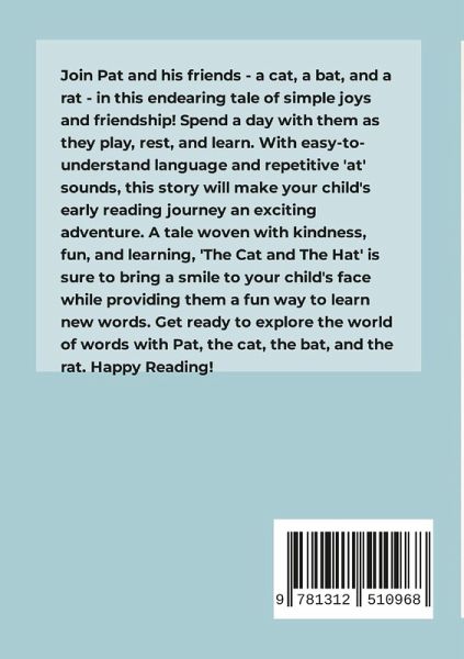 Discover the delightful tale of Pat, the cat, the bat, and the rat in this charming early reader's book designed to engage and educate. The story focuses on simple, one-syllable words that end with 'at,' providing an engaging method for young readers to learn phonics and build their vocabulary. This story takes us on a fun journey with a kind man named Pat, a friendly cat, a curious bat, and a playful rat, who spend their day together. Their simple yet engaging activities will capture children's imagination, making learning an enjoyable experience. From Pat's hat to the cat sitting on the mat, children will be able to relate to the everyday scenarios and learn new words in the process.